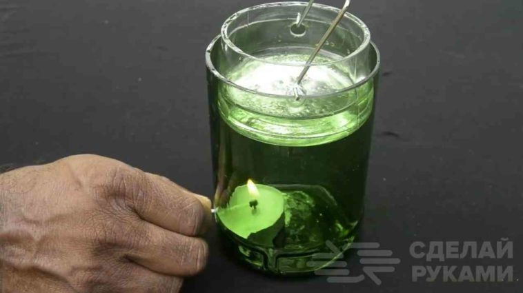 После этого внутрь основного стакана устанавливаем свечку, а сверху надо будет установить вторую емкость.