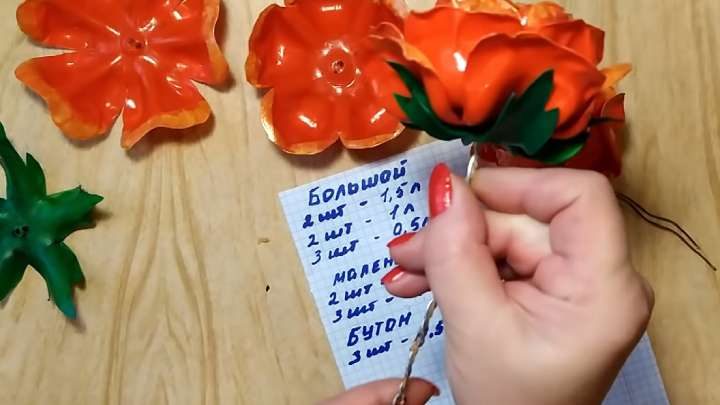 На маленькую розу: 2 шт. — 1 л., 3 шт. — 0,5 л. И, наконец, если захотите сделать нераскрывшийся бутон розы, то вам необходимо взять 3 донышка от 0,5 л бутылки.