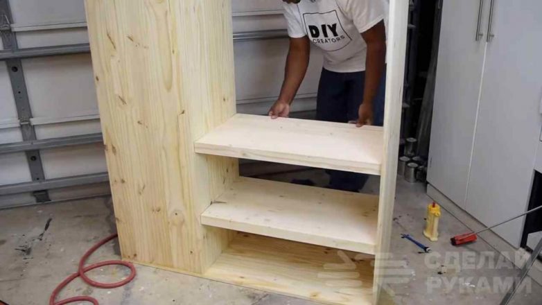 На следующем этапе делает еще две полки, которые нужно установить в основном отделении шкафа.