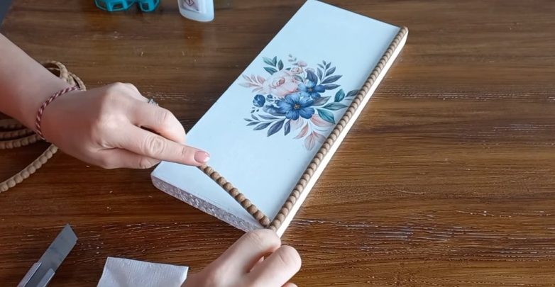 Оформите поднос декоративным шнуром, который придаст столешнице завершенный вид.