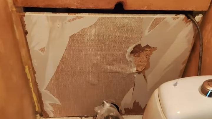 Задняя стенка, закрывающая коммуникации, была в ужасном состоянии.