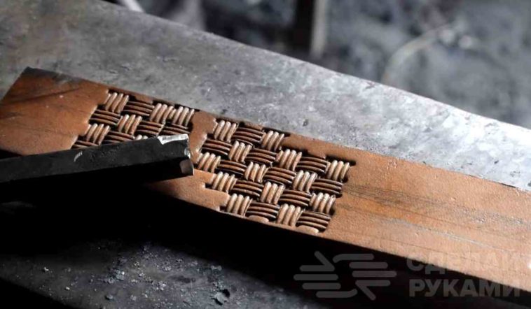 Самодельный штамп готов. С его помощью можно делать на коже очень красивый плетеный рисунок. Смотрите на фото ниже.