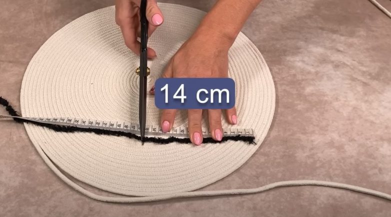 Для оформления салфетки нарежьте пряжу или шнур на отрезки длиной 14 см.