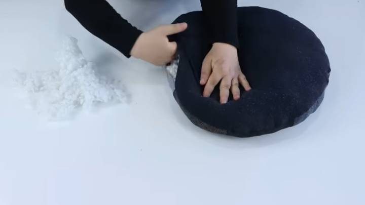 Через отверстие набить наполнитель, зашить вручную потайным швом.