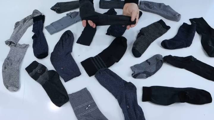 А целые одиночные носки разрезать вдоль, чтобы раскрыть ткань.
