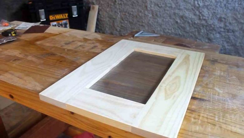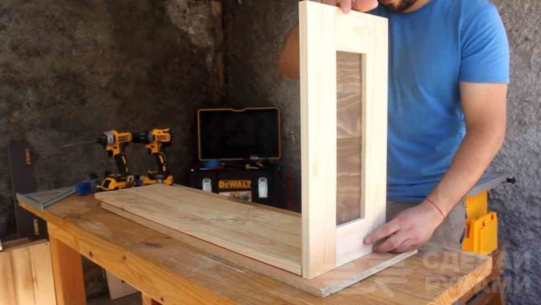На последнем этапе автор приступает к изготовлению двух раздвижных дверец. Делаются они по аналогии с боковыми стенками, только окна в центральной части — шире.