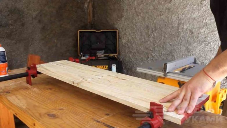На следующем этапе работ необходимо будет из подготовленных досок склеить два щита — нижнюю и верхнюю часть шкафа.