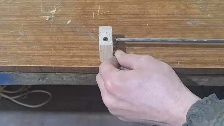 Закрепите на столе на деревяшках. Закрутите плотно и ровно нихромовую проволоку.