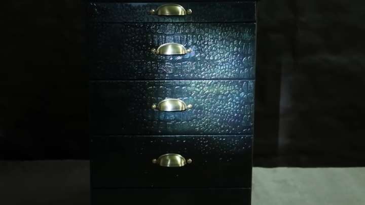 Таким способом можно украсить не только тумбу, а вообще любую деревянную мебель, на которой вы хотите получить эффект крокодиловой кожи! Результат просто потрясающий — взгляните сами!