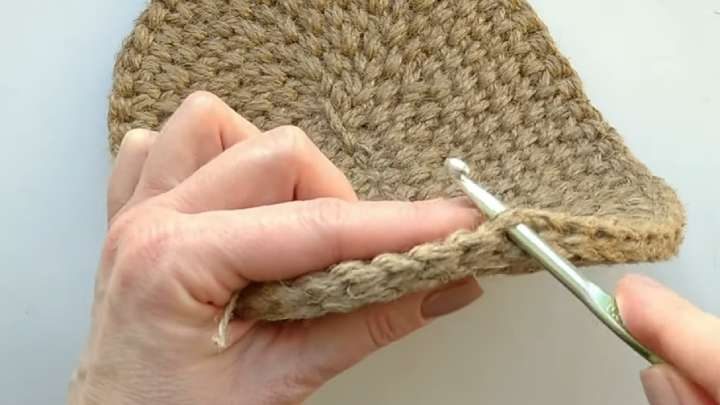 Зацепите крючком оставленную петлю и вытяните её наизнанку (внутрь) сумки.