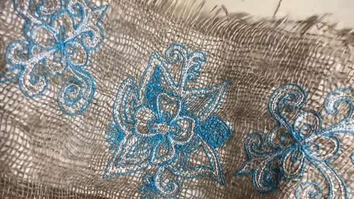 Мешковина — пожалуй, один из самых бюджетных материалов для творчества. На ней даже можно вышивать, причём получится очень даже симпатично! Главное — это подобрать подходящие нитки и лапку.