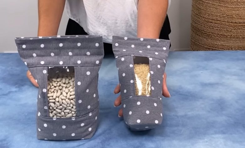 Для аккуратной организации шкафов на кухне и удобного хранения круп можно использовать различные баночки, однако не менее удобным будет хранение в самодельных пакетиках, которые можно сшить из остатков тканей.