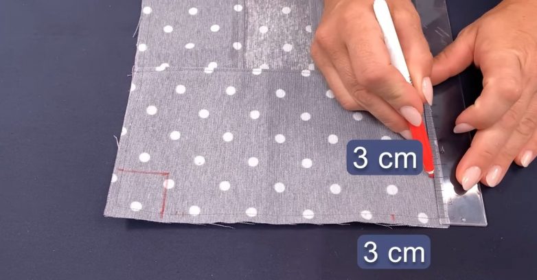 По боковым швам и нижней части изделия проложите строчки на расстоянии 1 см от края.