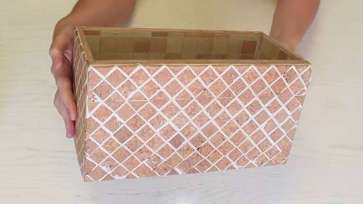 Теперь необходимо подготовить поверхность, которую будем украшать пробками. Например, можно собрать короб из картона.