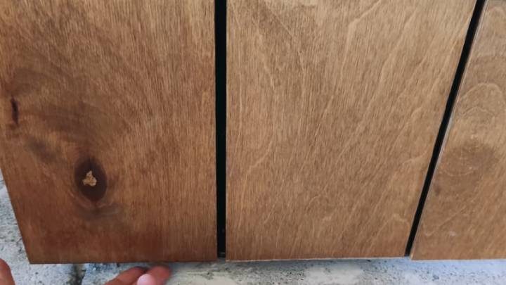 Монтировать готовые доски из фанеры на стену необходимо по уровню. Приклеивать с помощью клея «жидкие гвозди». Обязательно простукивайте фанеру киянкой, чтобы клей равномерно распределился.