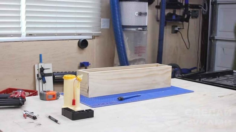 Для этого потребуется отпилить 4 куска доски: два длинных и два коротких. Из них нужно собрать короб прямоугольной формы. Размеры полки могут быть разными — это уже на ваше личное усмотрение.