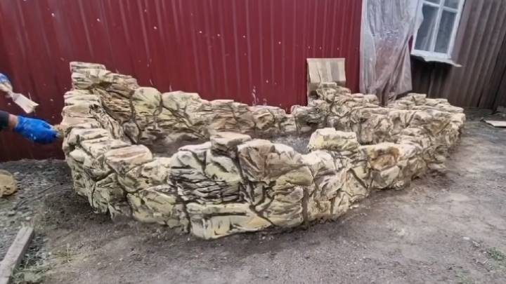 Когда раствор полностью высохнет и затвердеет (1-2 дня), покрасьте всё краской тёмного оттенка для наружных работ.