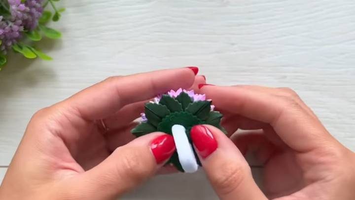 А из фетра вырежьте круг, прикрепите к нему резинку. Сам фетр приклейте к пенопластовому шарику.