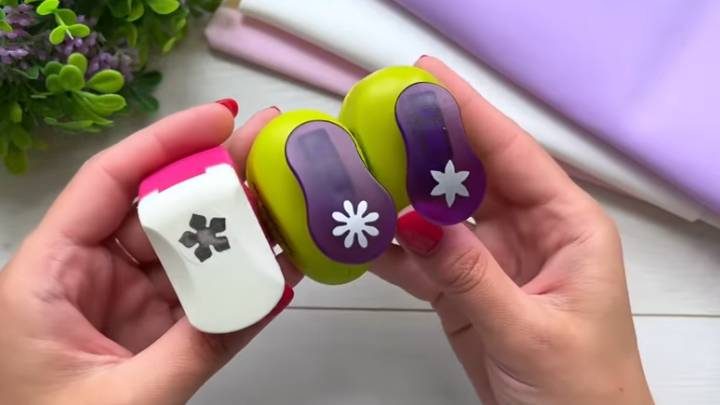 Для самих цветочков понадобится фоамиран и дырокол для удобства. Но цветы можно вырезать и вручную ножницами.