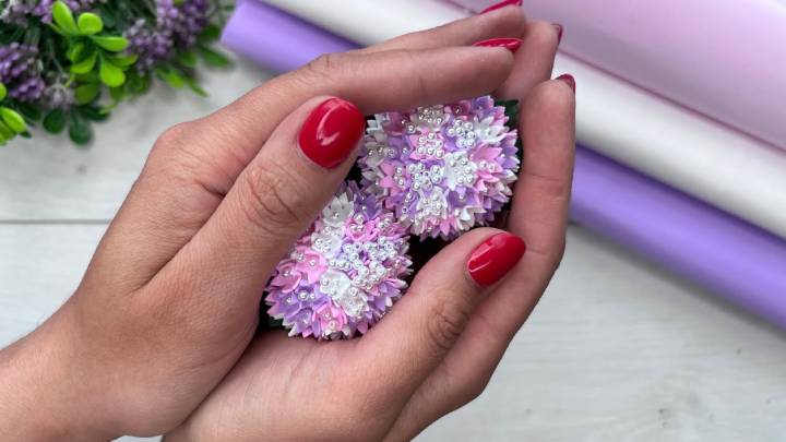 Сделайте своими руками красивейшие резиночки-бантики с цветами. Такая красота на волосах точно не останется незамеченной! Повторить идею сможет любой человек.
