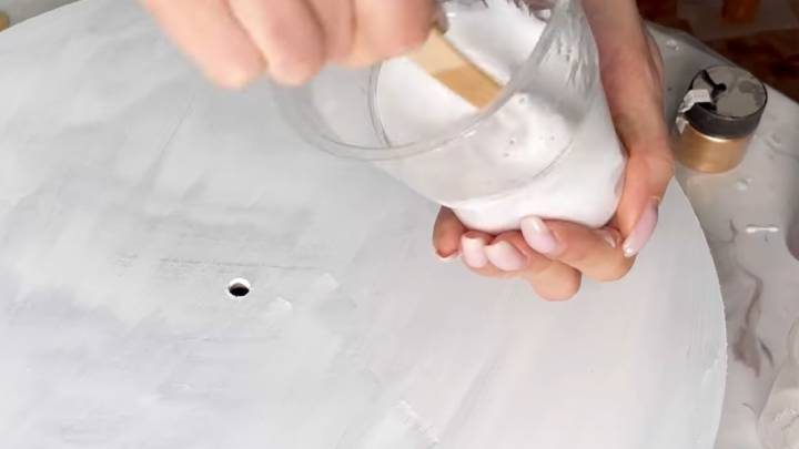 Распределить белую эпоксидную смолу с помощью одноразового деревянного шпателя. Затем просушить феном, чтобы выровнять поверхность.
