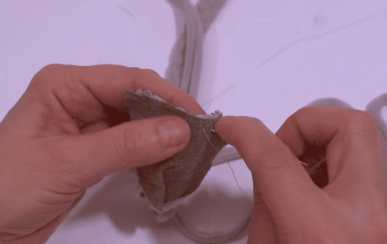 Нарезаем трикотаж на длинные полосы ориентировочной шириной 5-6 см. Чтобы получить «трубочки», каждую полосу растягиваем, просто потянув за противоположные концы. Для удобства скрепляем концы 3-х трубочек между собой и фиксируем на рабочей поверхности удобным способом. Сплетаем полосы в косу. По мере необходимости наращиваем полосы. Для этого расправляем концы трубочек, совмещаем ткань с небольшим запасом и дополнительно прошиваем, а затем снова растягиваем, чтобы придать округлую форму.