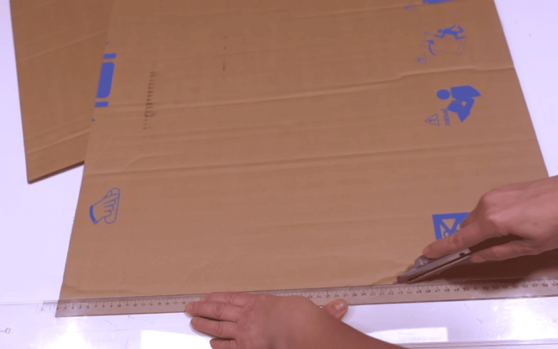 Основой для корпуса бельевой корзины станет гофрированный картон. Определив высоту и ширину корзины, вырезаем из картона заготовки нужной высоты. С противоположных сторон заготовки делаем продольные надрезы по всей длине с таким расчетом, чтобы можно было снять слой картона. Учитываем и то, что один надрез должен находиться на лицевой стороне, а ответный на изнаночной. Если заготовок несколько, то делаем обрезку на каждой из них.
