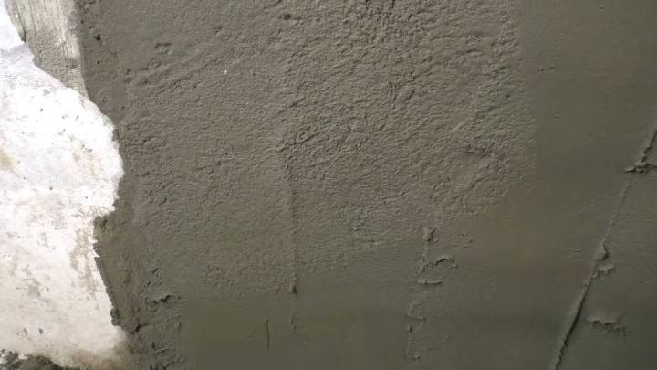 Затем развести 1 часть цемента, 3 части песка и пластификатор по инструкции с водой. Нанести раствор на стену достаточно толстым слоем.