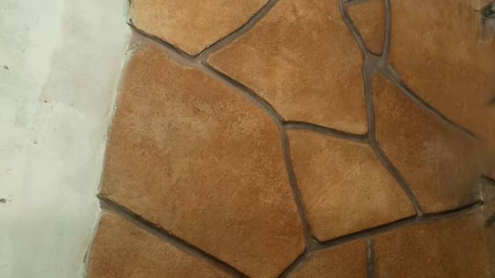 Для создания камня не нужна ровная поверхность. Однако предварительно её нужно прогрунтовать и нанести плиточный клей для лучшего сцепления (если основа гладкая).