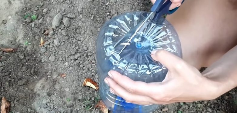 Вырежьте круглое отверстие в донышке каждой бутылки. Размер отверстия должен соответствовать размеру горлышка бутылки.