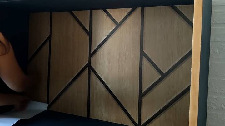 Торцы и ножки покройте лаком. Задние стенки серванта оклейте самоклеящейся плёнкой. Есть богатый выбор расцветок и узоров.