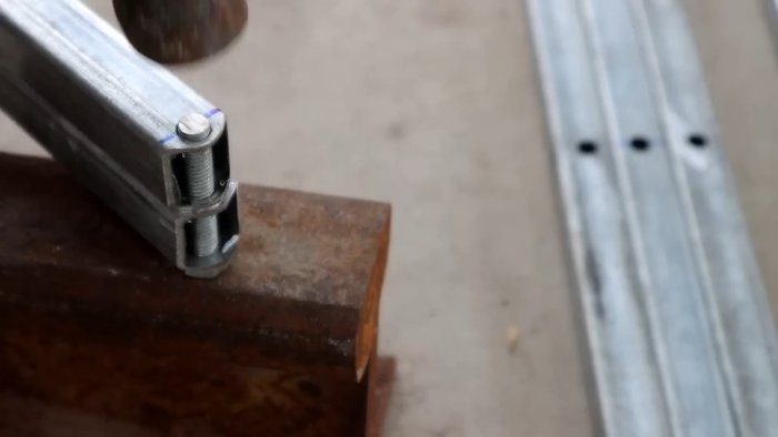 Отрезаем выступающие части болтов, оставляя лишь небольшую часть, которую развальцовываем молотком, но при этом оставляем соединение подвижным. 2 оставшиеся пары также соединяем болтами, но между отрезками помещаем гайки.