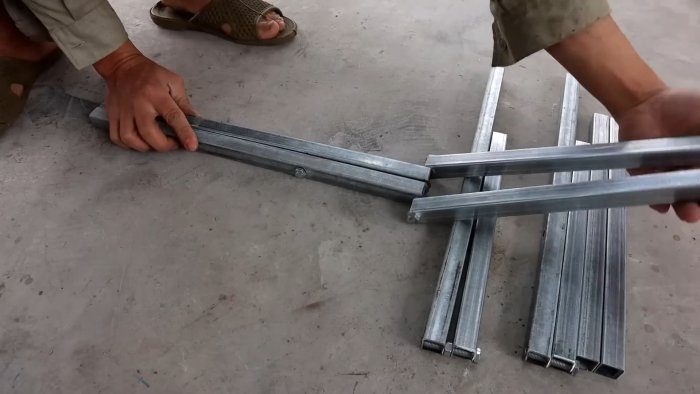 Процесс изготовления складного стула из профильной металлической трубы и дерева