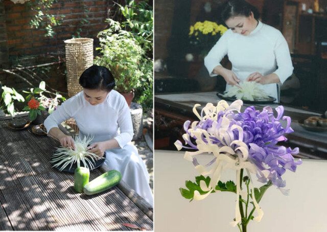 За эти годы Нгуен Тхи Тху научилась вырезать различные виды цветов — от примулы и лотоса до водяной лилии и пиона, но её любимым является один из самых сложных цветов — хризантема. На создание одного цветка требуется от 45 минут до часа, в зависимости от сложности дизайна.