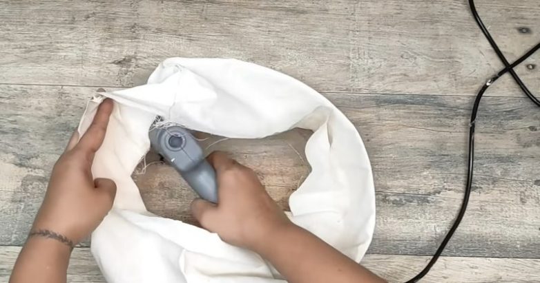 Обрежьте выступающую часть детали дна. Используя эту часть в качестве шаблона, нарисуйте на тонкой ткани круг.