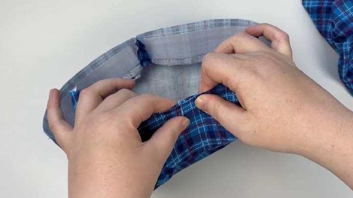 Вырезаем из фетра или любой другой плотной ткани полумесяц (лучше взять 2 шт и сшить вместе), затем переносим выкройку на рубашечную ткань, вырезаем с запасом на швы. Вшиваем полумесяц внутрь.