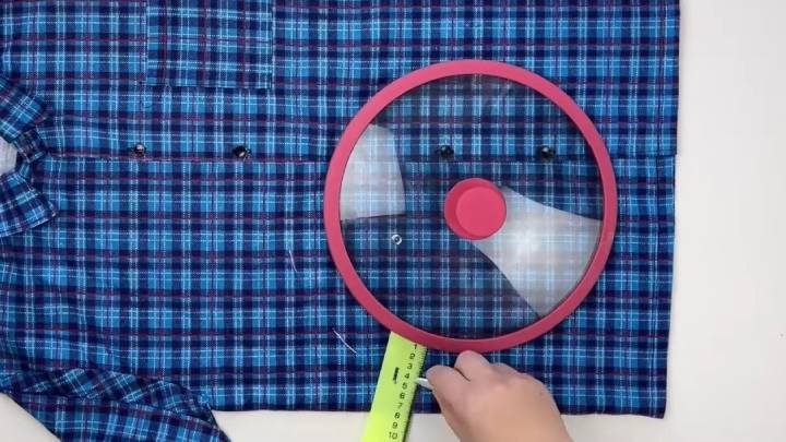 Из ненужных рубашек можно сшить множество полезных вещей! Предлагаем вам одну из таких идей. Даже выкройка не нужна: только крышка от кастрюли и немного фантазии!