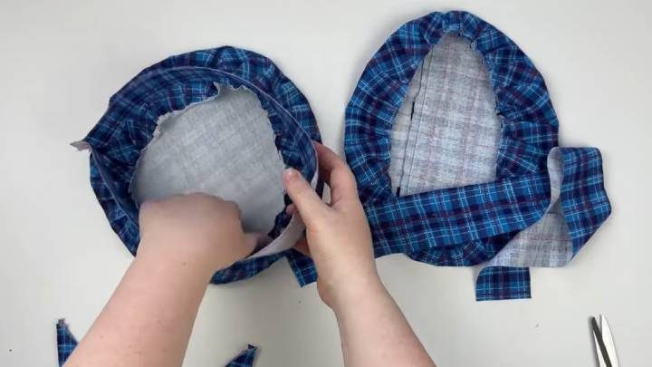 Приложите крышку к рубашке, дополнительно линейкой отступите 4 см, вырежьте круг. Достаточно одного круга.