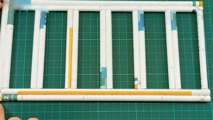 Теперь сделайте трубочки длиной 27 см. Между ними также приклейте трубочки 11 см.