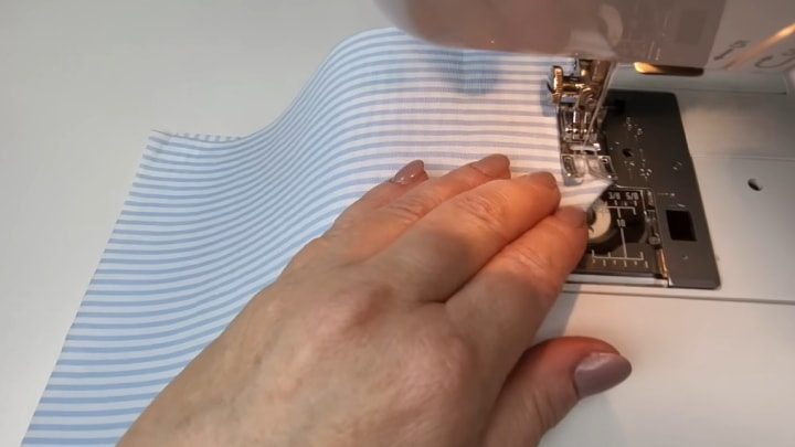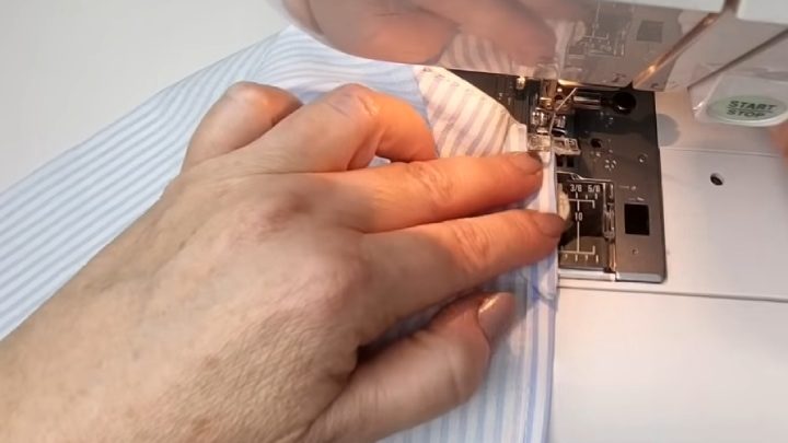 Сложите края вырезанного угла, сшейте на машинке, отступая 0,5 см.