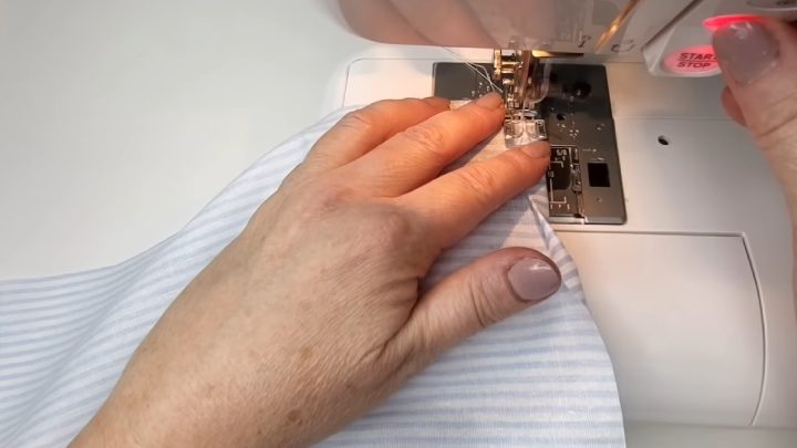 Срежьте лишнее, выверните и прошейте ещё раз. Подверните теперь край простыни дважды по 0,5 см, прошейте.