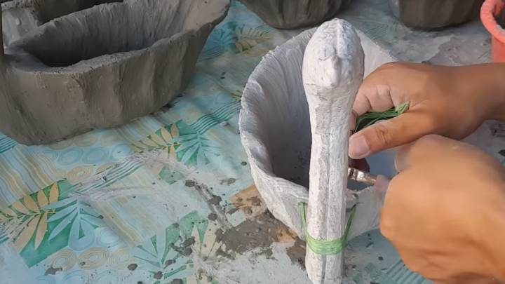 Только посмотрите на этих очаровательных лебедей! Это кашпо, сделанное из цемента, — бюджетно и совсем не сложно.