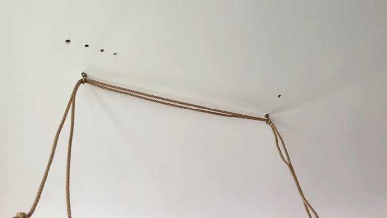 В качестве крепления для люстры отлично подойдет толстый канат, который необходимо протянуть через анкерные болты, вкрученные в потолок.