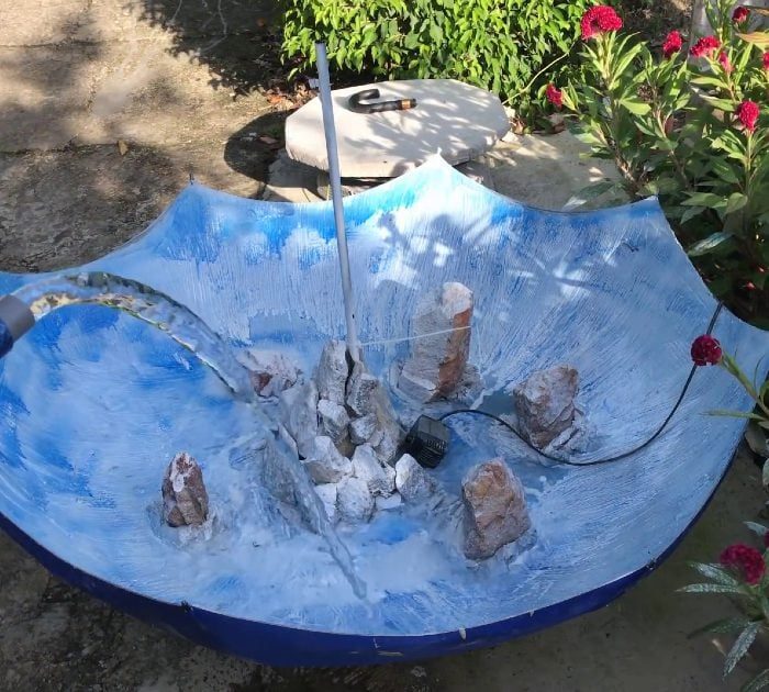 Когда краска высохнет, переместите цементный аквариум туда, куда вы хотите его поставить. Установите водяной насос и начните наполнять его водой. Вы можете разместить круглый поплавок по размеру вашего зонтика и разместить вокруг него водные растения. Добавьте другой декор, который вам нравится, но не забудьте оставить достаточно места, чтобы рыба могла плавать. Наконец, перенесите рыбок в новый аквариум
