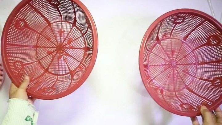 Если у вас есть два ненужных или даже поломанных пластиковых дуршлага (можно взять миски), то не спешите выбрасывать их. Переделайте в настоящую красоту, которая, к тому же, послужит вам в быту!