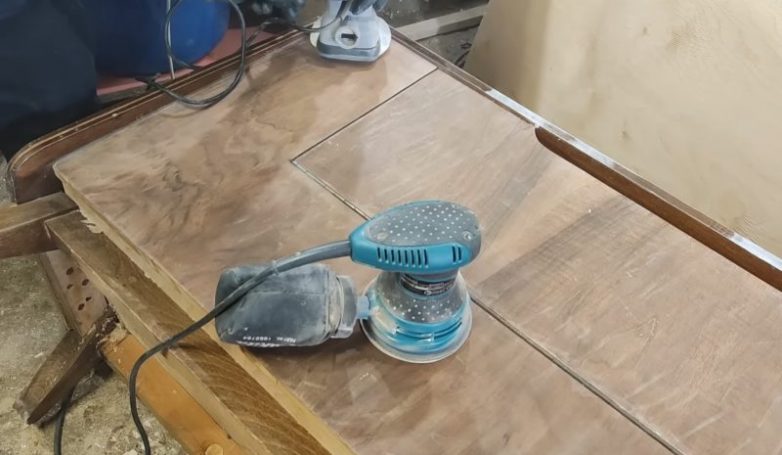 Удалите слой лака, покрывающий тумбу. Тщательно отшлифуйте все поверхности.