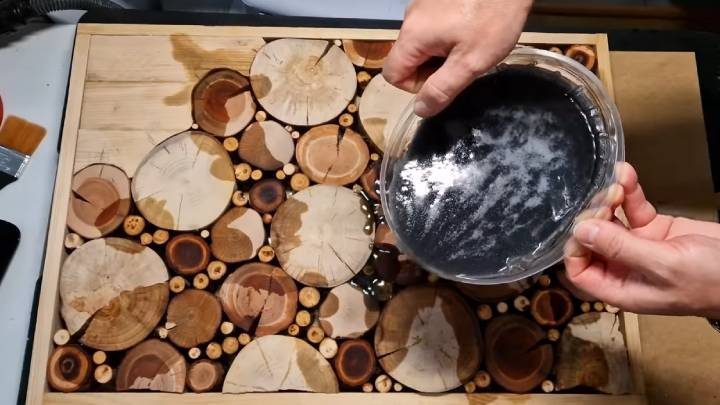 Разведите эпоксидную смолу по инструкции на упаковке. Можно добавить к ней краситель желаемого цвета. Залейте опалубку, оставьте до полного затвердевания смолы.