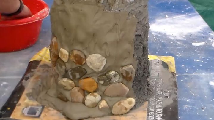 Украсьте свой сад природным, самобытным, уникальным декором! Для этого вам понадобится цементно-песчаный раствор и плоские речные камушки.