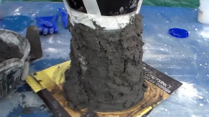 Установите пластиковое ведро в пакете/обмотанное полиэтиленом. Обмажьте со всех сторон раствором.
