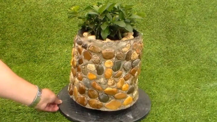 А снаружи покройте лаком. Получился шикарный вазон для сада!